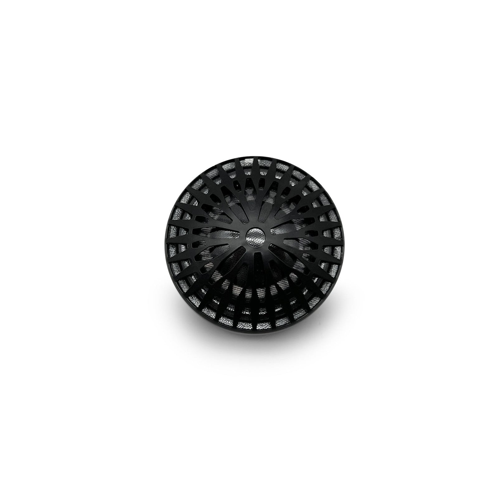 - Deluxe protective stainless-steel grille with perforations calibrated to function as an acoustic lens, guaranteeing the sound emission will be in the on-axis part of the speaker, and also curved to the sides, which is very useful in car installations where speaker placement often results in off-axis listening.