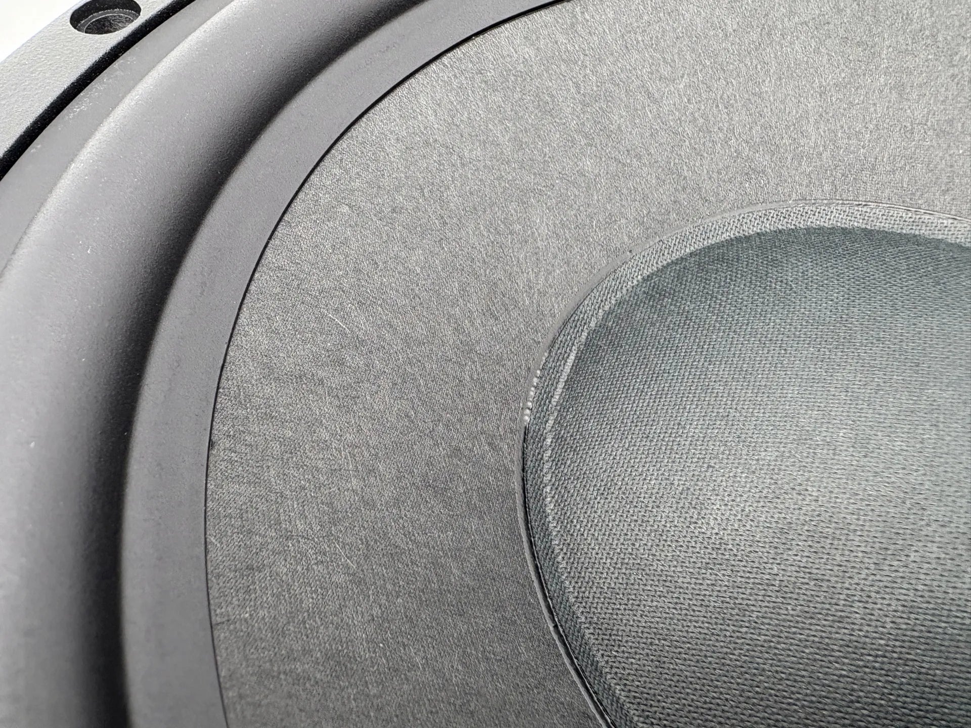 The moving motor structure and suspension are extremely efficient and always under control, thanks to immensely strong ferrite stacked magnets. The subwoofers feature compact, aerodynamically transparent bedrock solid cast aluminium baskets; said material chosen for its magnetically inert properties. Top side the unit features a blended polymethacrylimide foam composite cone which is guided via a specifically profiled rubber surround which has a Shore hardness of 65. On the frame are solid push terminals, connected internally to these are high quality leads sewn in the spiders, which are progressively rolled polycotton. Between the surround atop and spider beneath the reciprocation control is otherworldly. To protect the bottom of the motor is an extended back plate capped with black cap and Italian flag colour scheme. It’s a downright crime the back-end of these speakers won’t be seen once installed, for the motor is a work of art.